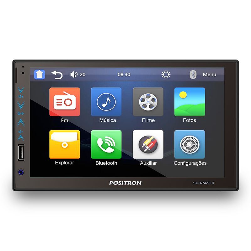 Com a Central Multimídia SP8245LK você pode espelhar o seu smartphone com sistema operacional Android ou iOS na tela do som, via cabo USB de forma prática.